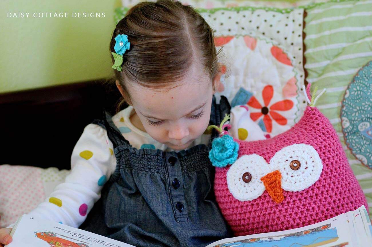 The first modification I ended up making was leaving off the legs. Not that they're not cute, we just went with a simpler style this time. The second mod I made was to go with two colors for the body instead of just the one color of the original pattern. Another mod I made was adding wings to the sides, just as an extra little element to add to the "owliness" of it. I also changed the eyes and beak to my own style, which was just a personal preference. Instead of a flower we went with a bow, and voila! Cute little owl toy/pillow for a cute little girl. Hopefully she loves it as much as I do!